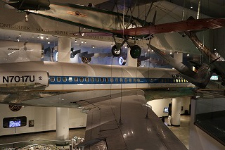ボーイング727-100。ユナイテッド航空で1964年〜1991年まで飛行した後、この博物館に寄贈された。いくら小型機とはいえ、旅客機丸ごと一機を屋内展示するとはすごい。但し主翼や尾翼の半分は展示の為切り取られている。 |