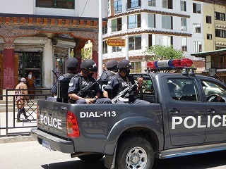 | そしてこれも初めて見たSWATのような武装警官。ブータンにしてはかっこいいが銃はAKだった。 | ![]() |