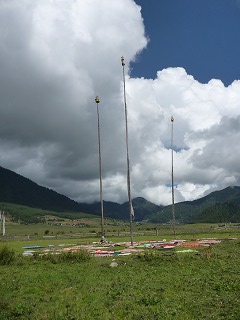 本堂を囲うように塀があるが、それも簡素なもの。この大平原(ブータンでは)に建つお寺にあまり意味はなさそうだ。 |