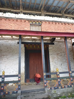 | 本堂は古めかしくどっしりとした作り。ブータンの他のお寺とは少し作りが違う感じがした。 | ![]() |