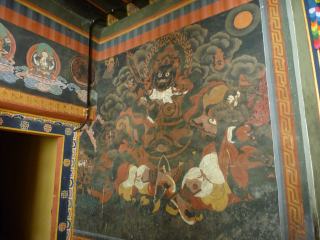 | こちらは本堂入口に描かれている壁画。こちらは古いものが多いが、すばらしいものばかりだ。 | ||
