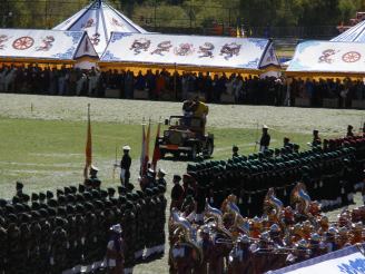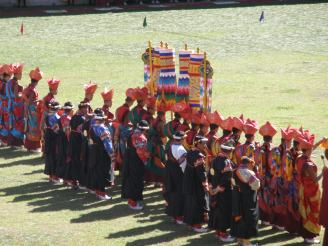 | ブータン各地の各民族が、それぞれの民族衣装をまとって入場してきた。 | ||
