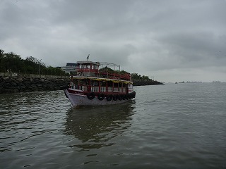 船はだんだんとムンバイから離れていく。ムンバイ湾内には結構船舶の往来が多い。 |