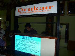 | 今回は日食ツアーのチャーターフライト。原則国内線がない(ブータン国内に空港はここ一カ所のみ)ので、国際線に乗らないのに空港を利用できるのも貴重だ。 | ||