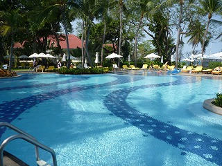 一番浜辺側にあるプール。タイ様式の建物があちこちにある。すぐ先はもう浜辺だ。 | |