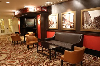 シカゴの名門ホテル・パーマーハウスもヒルトン系だ。エントランスはいかにもアメリカンな煌びやかさだ。 |
