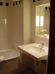 とりあえず長旅の疲れを癒すために、シャワーを浴びる。シャンプー類が試験管のようなデザインでなかなかかわいい。バスタブも広くて気持ちが良い。 | |