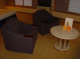 | ソファはこんな感じで向き合っている。 が、結局テレビを見てくつろぐ時は、この一人用のソファを回転させて見ていた。 |