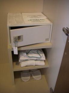 | クローゼットの中にはセイフティボックスとスリッパやパジャマが備えられている。 | |