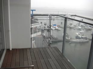 | ベランダからみたバスルーム。外から丸見えだが、海に面しているので覗かれる心配もないだろう。 | |