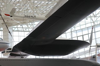 リアファン2100。プロペラが機体後部にある推進式で機体の殆どに複合材が用いられている。この機体は1981年に飛行したプロタイプ。設計したビル・リアさんはこの機体が完成するのを見ること無く亡くなってしまった。先進的な機体だったがアメリカでの耐空証明を取得できずに、わずか3機の生産で開発は終了した。 |
