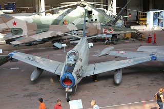 フランス、ダッソー・ブレゲー社製MD-450ウーラガン。フランス初の国産ジェット機で約350機が製造され輸出も行われた。ちなみにウーラガンはベルギーでは運用されていない。 |