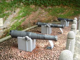 | ここは昔の要塞後を博物館に改装したそうで、ハイキングコースのような道沿いに隠れるように昔の砲台が見え隠れするのが面白い。 | ||