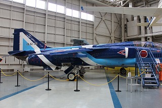 | 日本初のジェット練習機・T-1。この810号機は様々なエンジンの実験機として初飛行から最終飛行までずっと岐阜基地に配属されていた。現在の機体は飛行開発実験団50周年記念塗装が施されている。 | ![]() |
