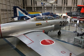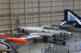 T-33Aジェット練習機。1955年より米軍からの供与により導入され、空自初のジェット練習機となった。1959年からは川崎重工でライセンス生産が開始された。展示されている61-5221号機は1967年から1994年まで岐阜基地の飛行開発実験団でテストパイロットの教育用に使用されていた。 |