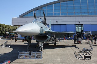 浜松基地内にある航空自衛隊・第一術科学校の整備実習用の教材として保有しているF-2の展示会。様々な角度からじっくりと眺めることができる。 |