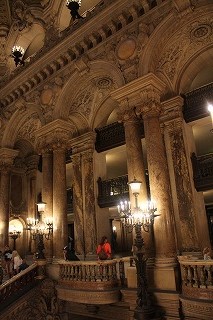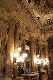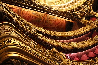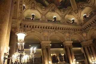 | 有名なシャガールの天井画と豪華絢爛なシャンデリア。次は絶対にここで舞台を見たいものだ。 | ![]() |