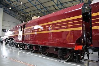 1938年製造、ロンドン・ミッドランド&スコティッシュ鉄道で使用されたプリンセスコロネーションクラスのダッチェス・オブ・ハミルトン号。当時流行の流線形機関車だが、やはり保守点検が大変だったようで戦後撤去されてしまったが、2009年に再度カバーが取り付けられた。 |