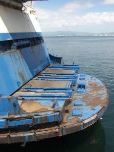 | 摩周丸を後方から見る。車両搬入口が良く見える。 | ||