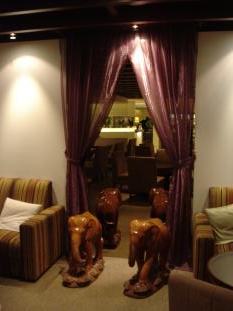 | 内部はせまいながらも、タイ風に象の置物や壷などが上品に飾られている。 | ||