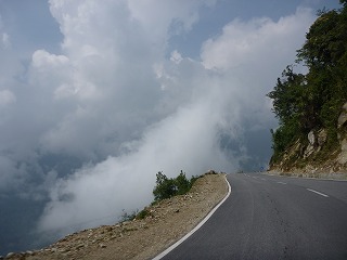 ゲドゥを出発して再びプンツォリンを目指す。チュカは霧の町だと良くいわれるが、まさに霧というか雲の中を突っ切っていく。 | |