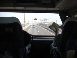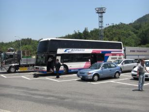 | 出発を待つ大阪行きのバス。昨日の折り返しを利用しているので、全く同じ車両だ。 | ||