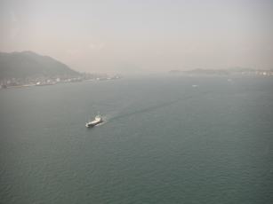 | 小倉を出てしばらくすると、関門海峡大橋を通過。実は昨日は寝ていて橋を見ることができなかった。 | ||