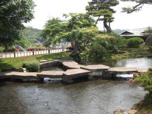 | 雁行橋。一枚の岩が亀の甲羅の形をしている。 | ||